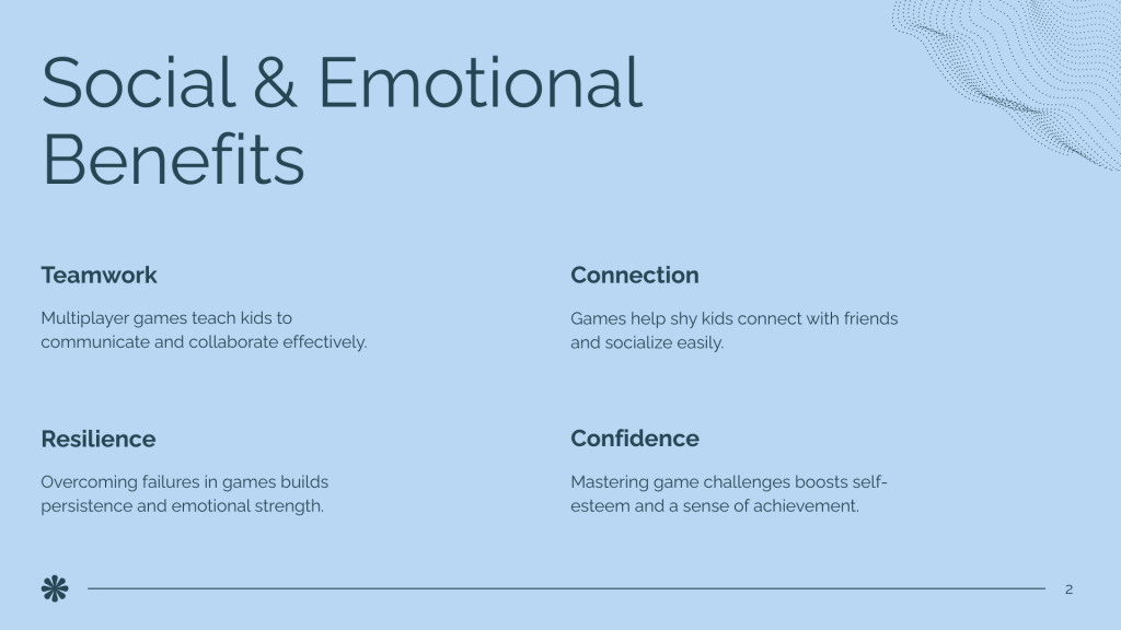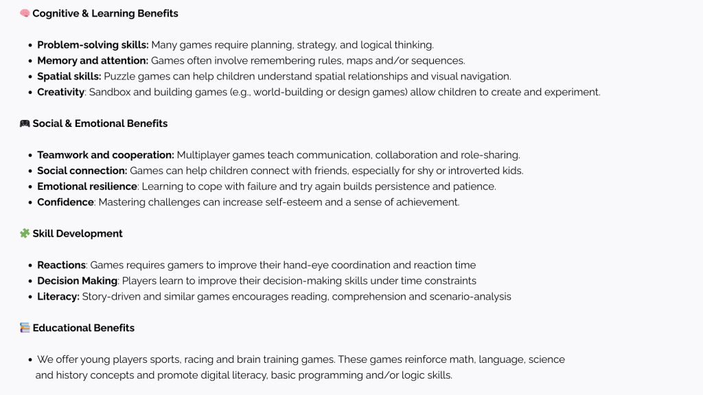 E-games support learning, develop social skills, sportsmanship and cognitive development when carried out under the supervision of an adult.